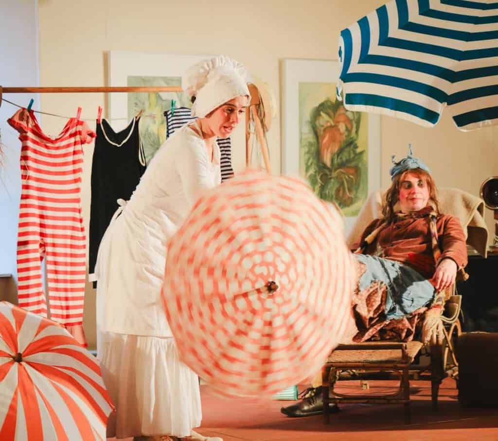 Bei den Theaterprojekttagen im Museum erkunden Kinder mit Thomas und Daniela Schwalbe, den beiden Schauspielern des Dresdener Wandertheaters Schwalbe, die besonderen historischen Orte und entdecken mit Tanz, Spiel und Witz, wie der Alltag früher aussah.